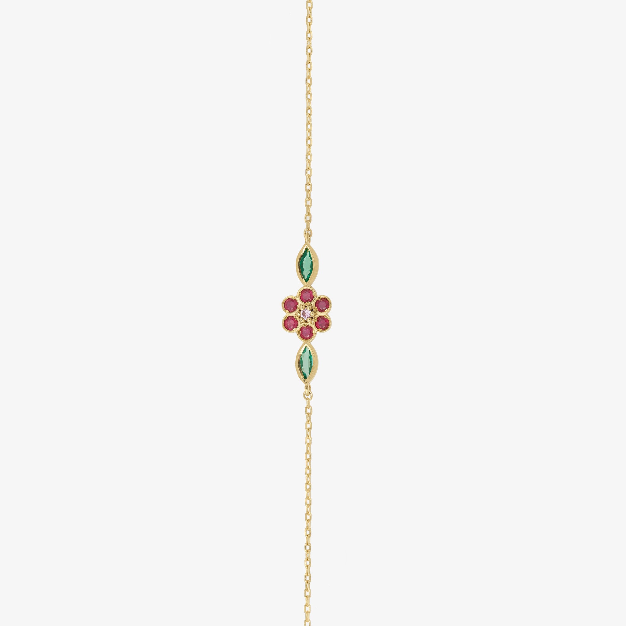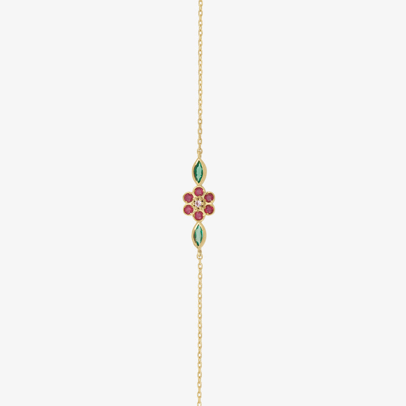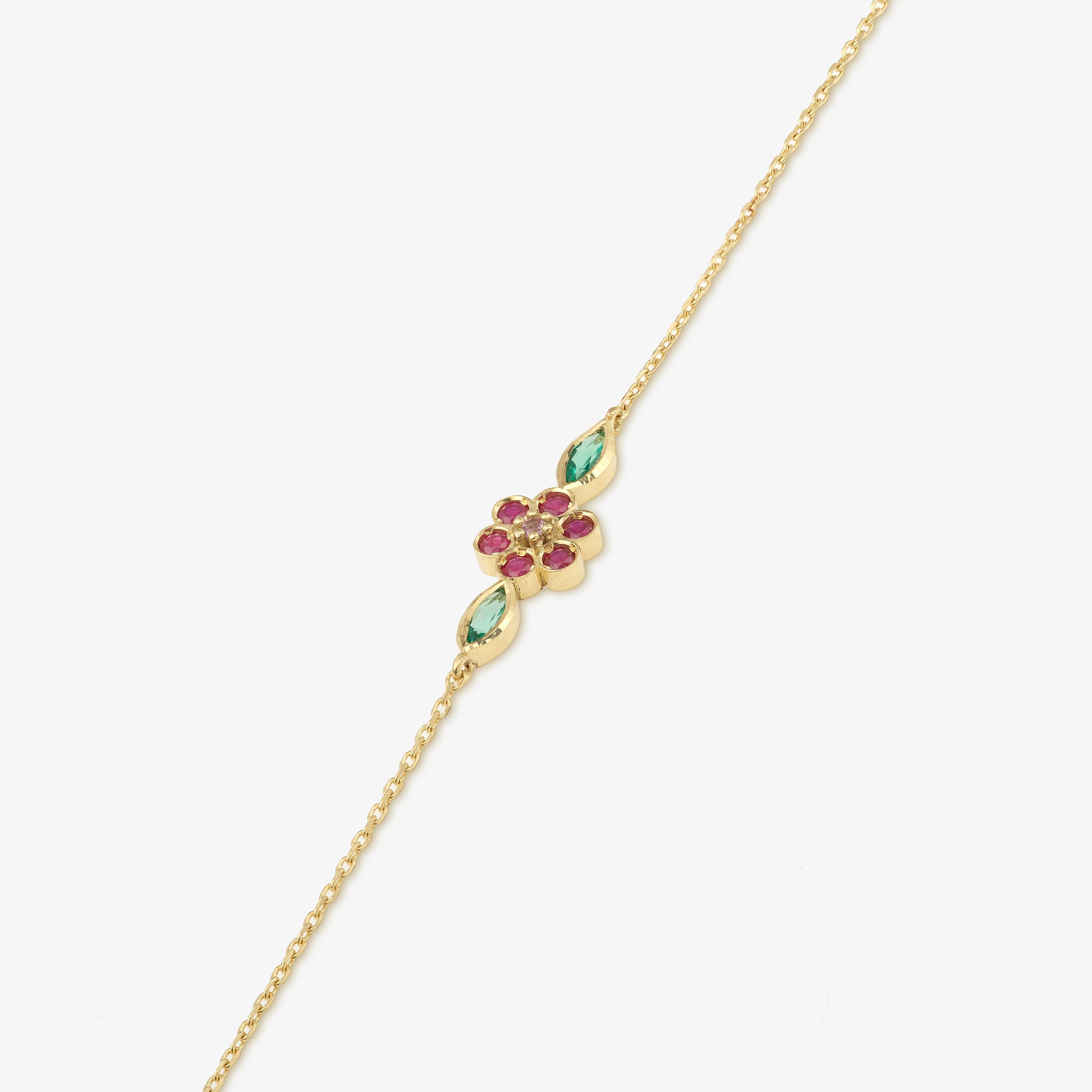 A delicate, floral bracelet with tangy shades. The Miniflower Red bracelet delicately places on your wrist a ruby flower with a pink sapphire heart.