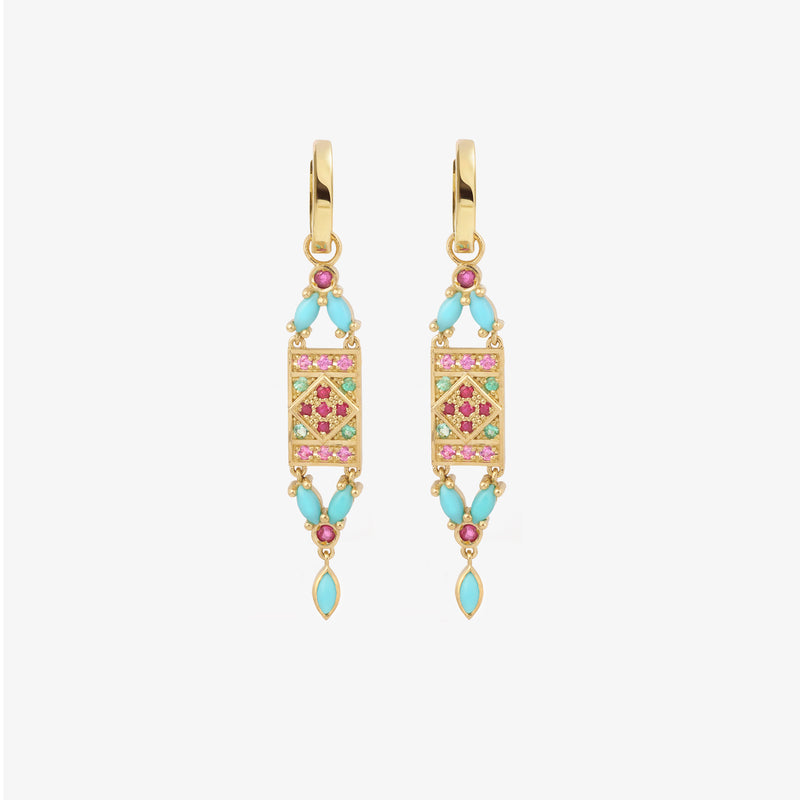 The Ava earrings Turquoise express the power of color. A unique blend of tangy shades that illuminate your face, punctuated by the beauty of natural turquoise stone. Earrings that guarantee an immediate glow.