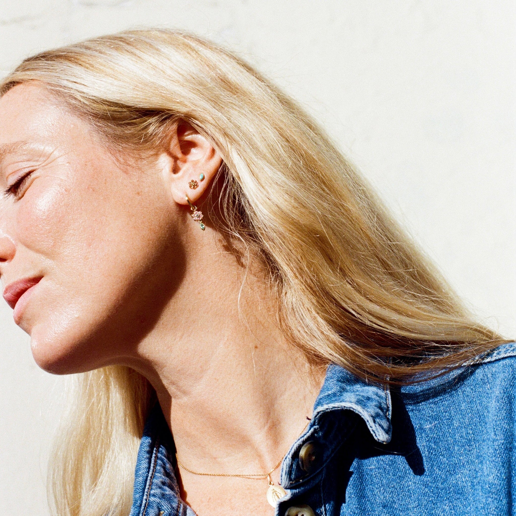 A capsule collection imagined by Jennifer Neyt, journalist and content creator, former editor-in-chief of Vogue France digital. Jewelry that embraces the free spirit of the '70s, blending the simplicity of floral designs with the vibrant, psychedelic colors of gemstones.