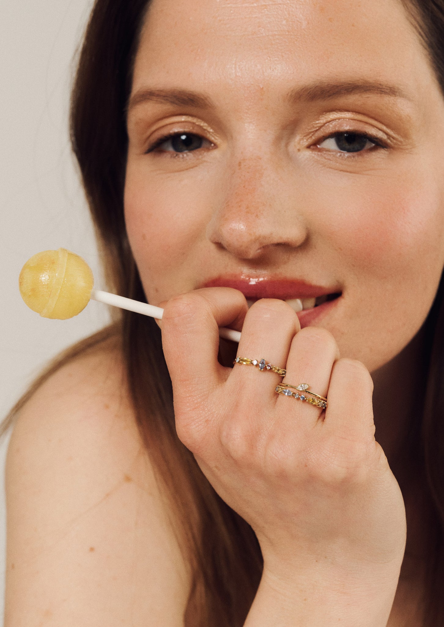 From lavender blue to soft yellow, the inspiration for this ring is resolutely pastel. Precious and luminous, the Gaia ring 2 Givre is fitted with "salt and pepper" diamonds to create a symphony of gentle hues. A romantic ring fitted with precious stones, ideal as a unique and audacious wedding band. Bright and delicate, Gaia rings can be combined together infinitely. Alone or stacked, dare to create your own style!