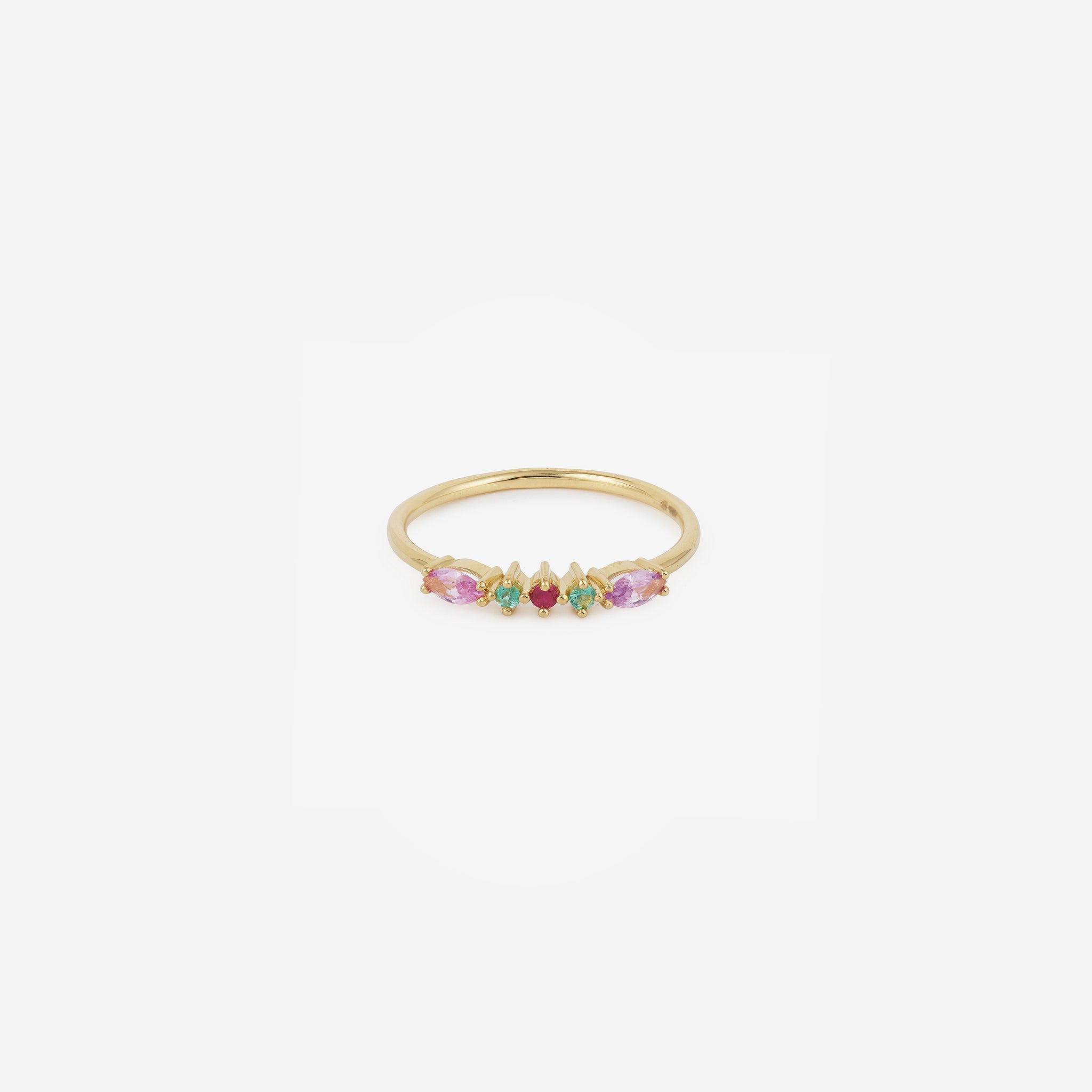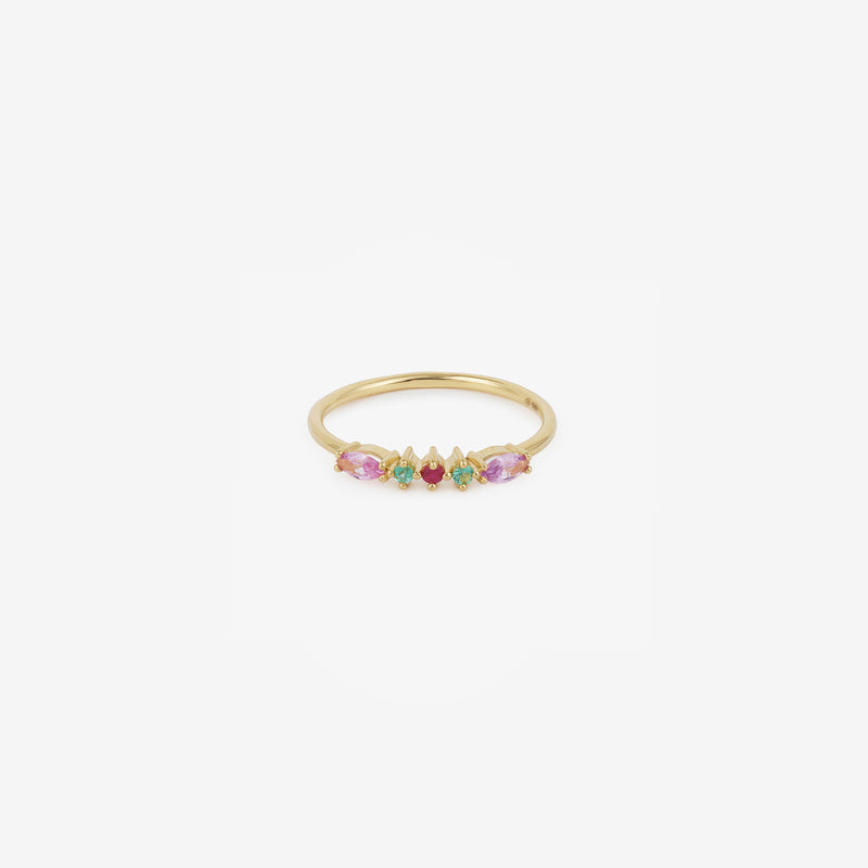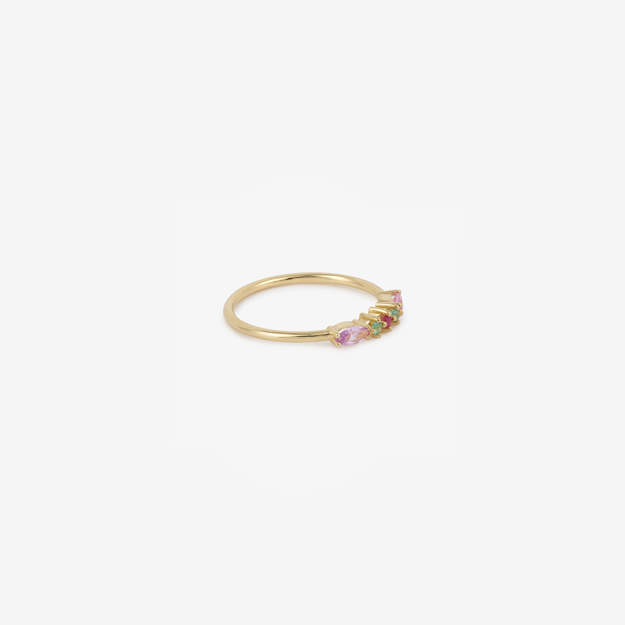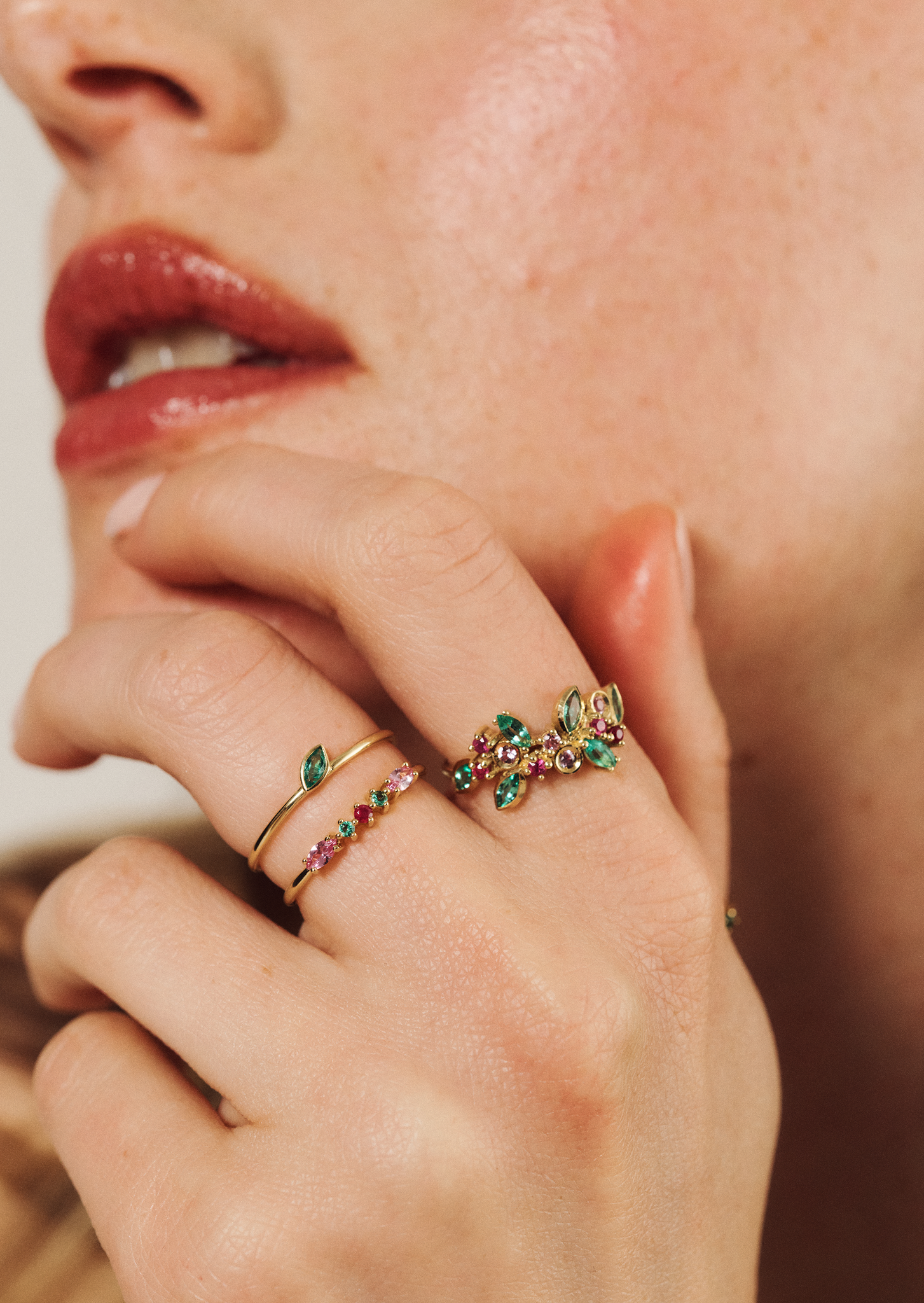 The Gaia 6 embraces the brand's signature color mix of pink sapphire, a touch of emerald and a hint of ruby. Ideal for a first piece of jewelry or paired with other thin rings for an ultra trendy look.