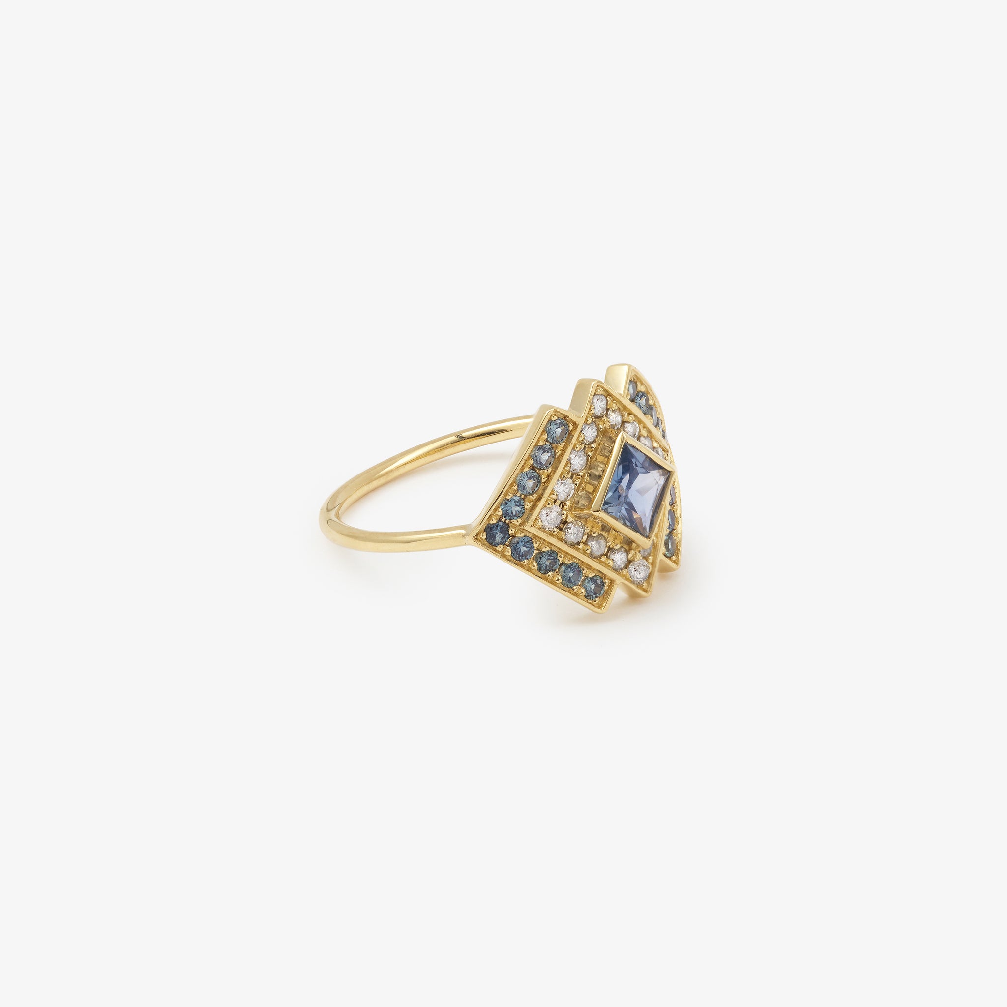 Ginger bague 6 bleue, or jaune, saphir bleu, diamant, saphir vert profil