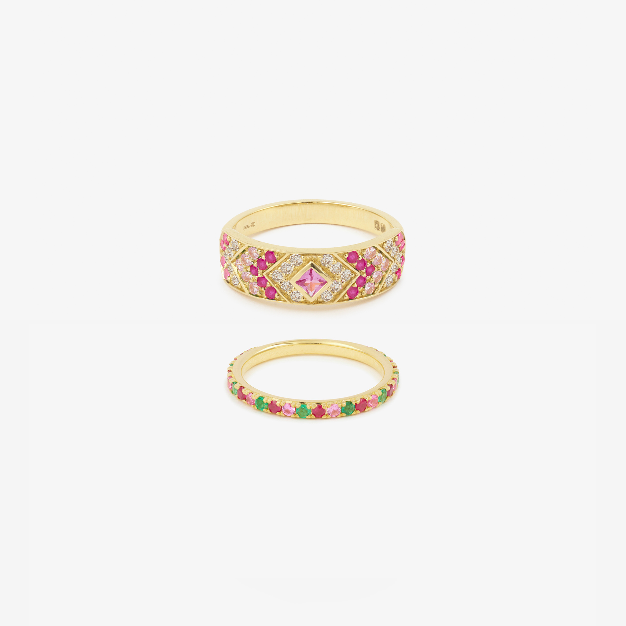 Pink! Ani Sakura and Gaia are the definition of freshness, romance, and love, of course. Ruby, pink sapphire, and emerald pair beautifully with diamonds and… with you!