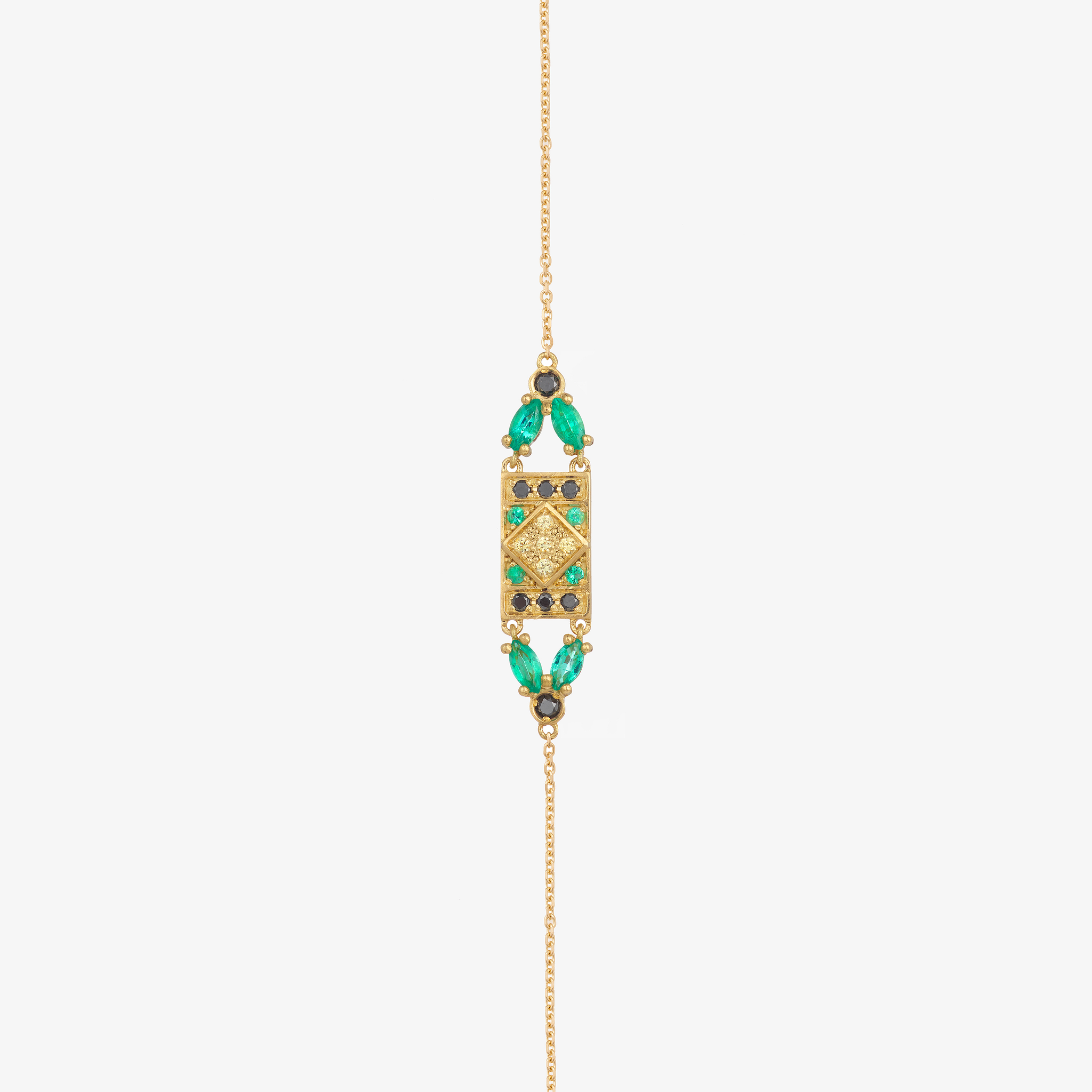 Tinted with the Art Deco spirit, the Ava 2 Green bracelet sublimates your wrist with elegance. Both singular and refined, it offers your outfits a nice colorful touch. Succumb to the charm of this bracelet dressed with its 21 precious stones.