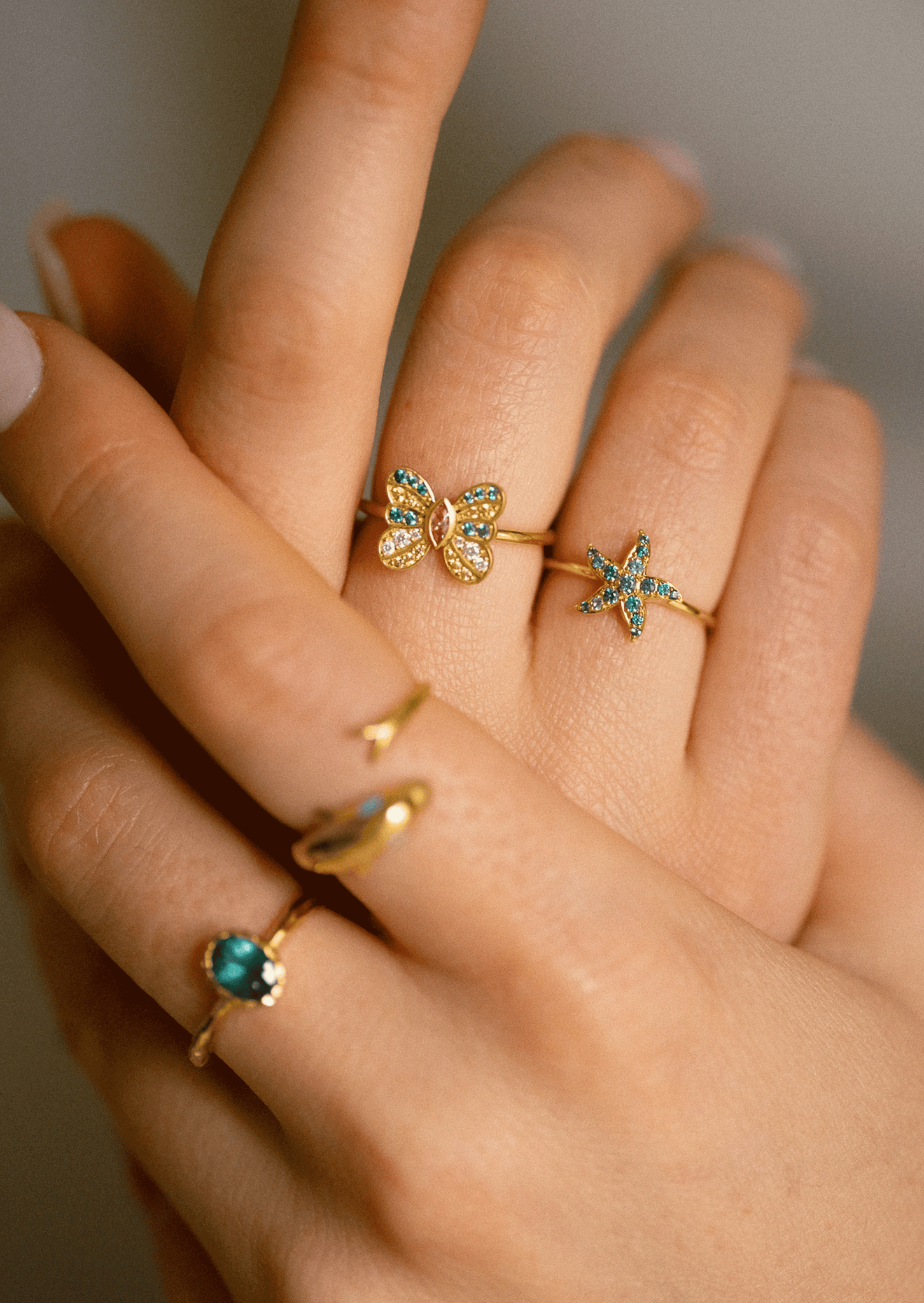 A collection envisioned by Sabina Socol as a golden memory. Sun-kissed jewelry that brings to mind vacations, seaside markets, and the lucky charms of our childhood muses. Good luck pieces to wear all year round, coming alive again when summer returns.