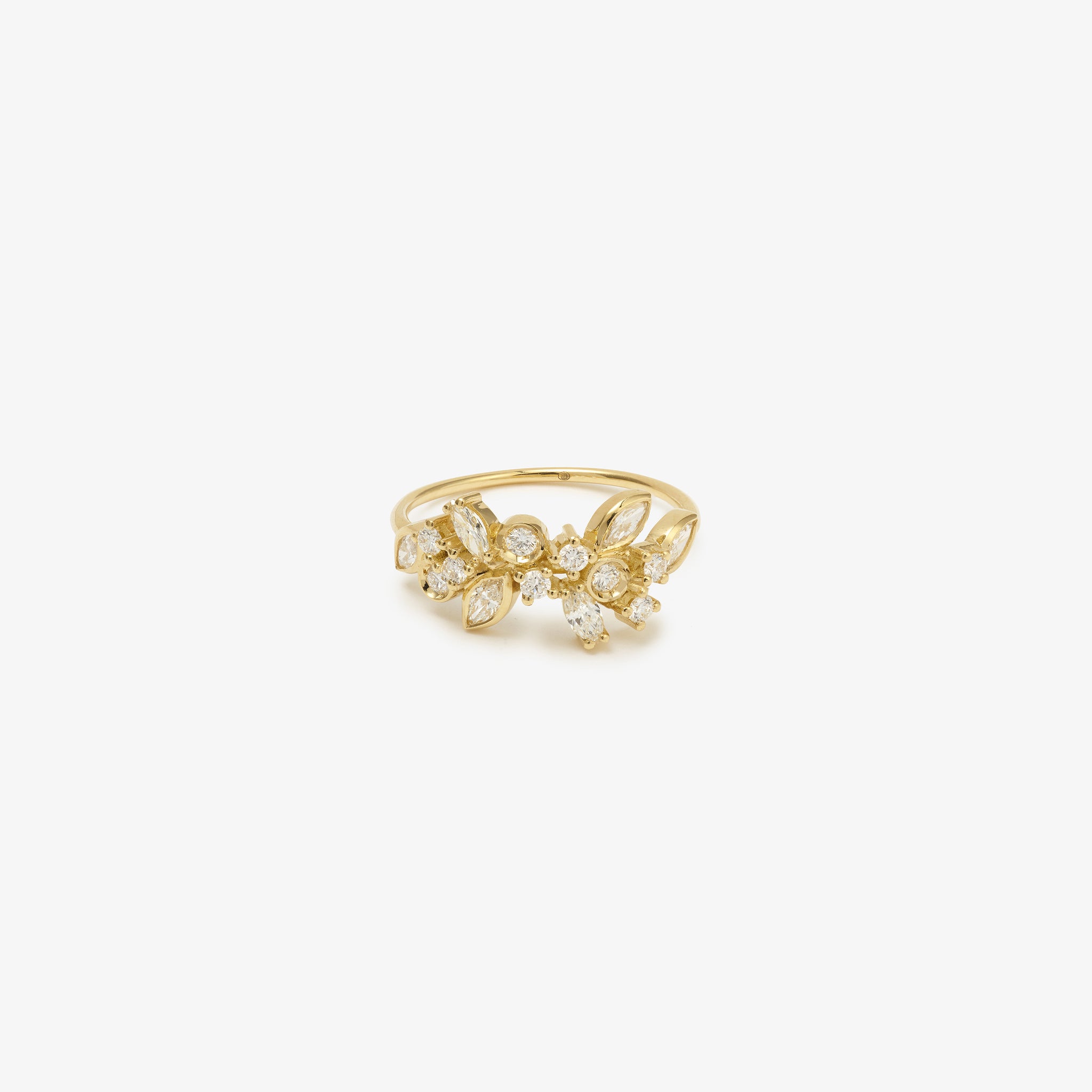 Camélia bague 1 diamant or jaune, diamants, nature-m