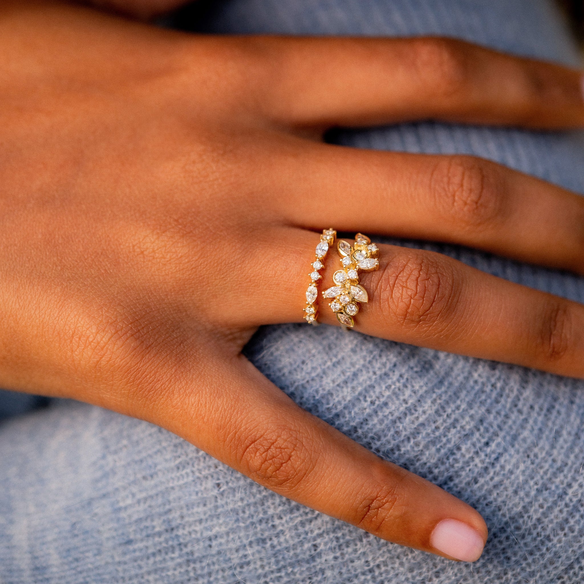 At Sophie d'Agon, we especially love colored gemstones. So we need a good reason to work the white diamond, and the Camélia ring 1 is perfectly suited for it. Entirely set with diamonds, Camélia will adorn your hand with a delicate garland of flowers. Ideal for an engagement, this jewel celebrates eternal love whose sparkle never fades.