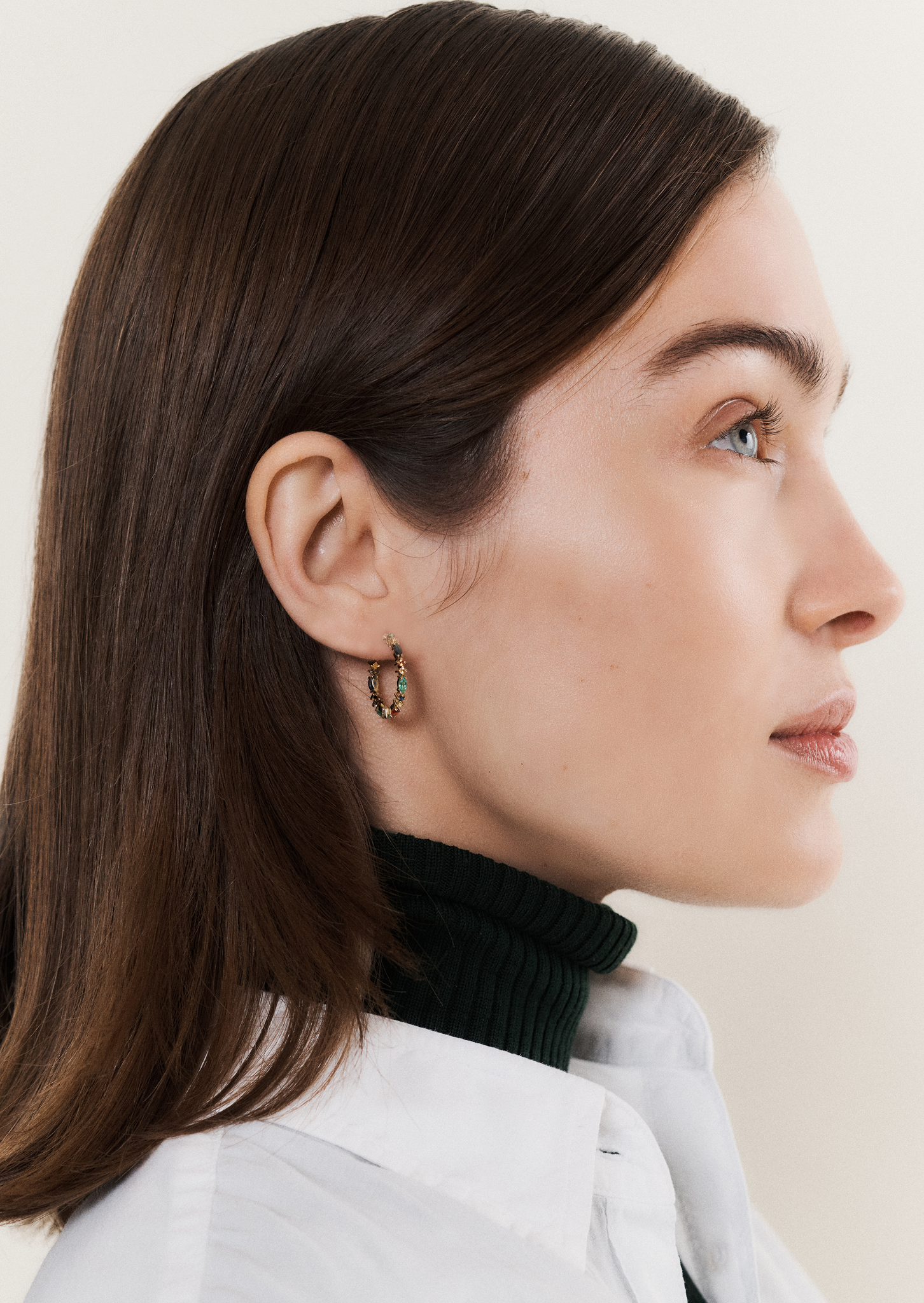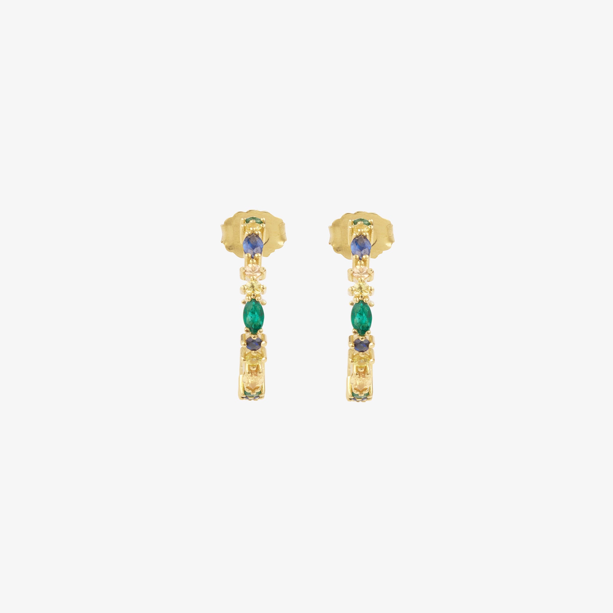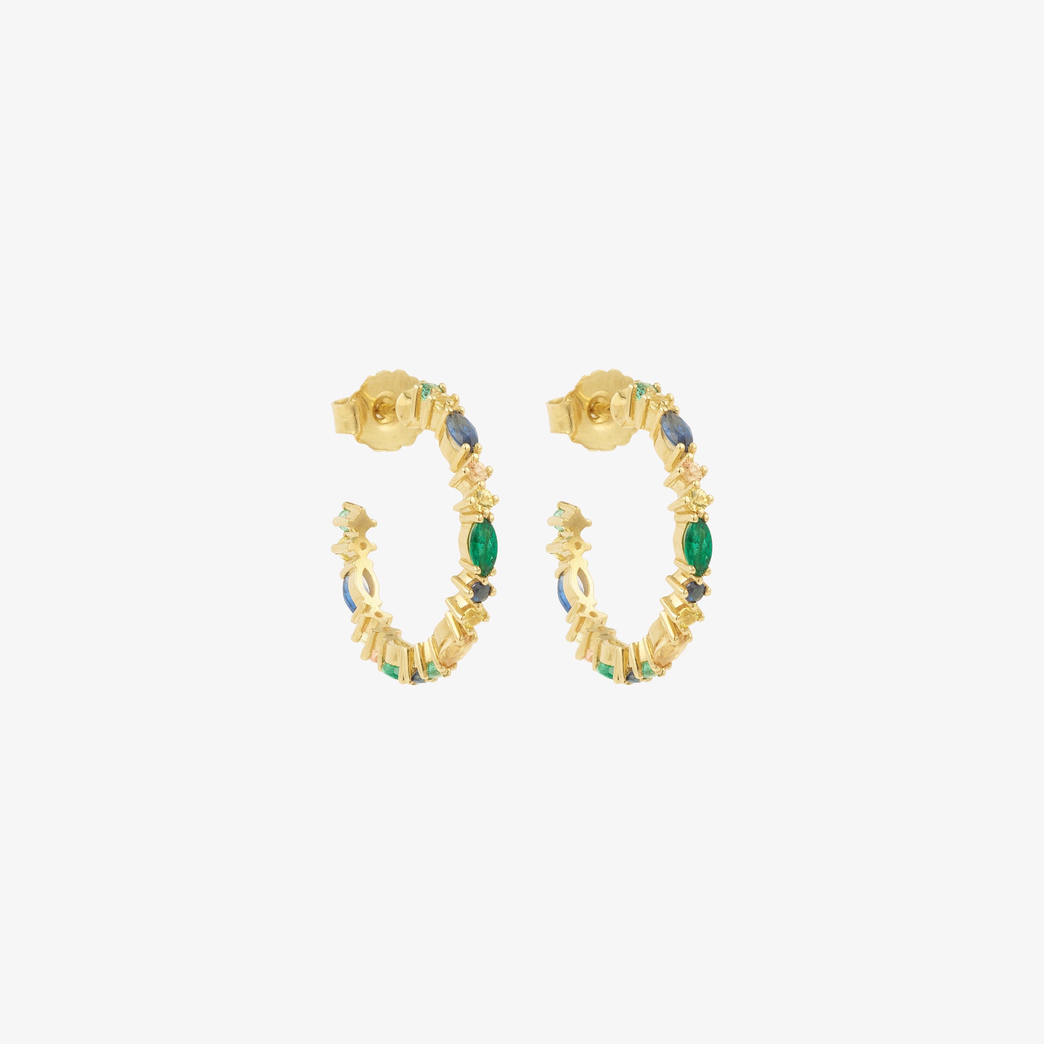 Bursting with multicolored sapphires and vibrant emeralds, the Gaia hoops 2 Green are destined to turn heads. A medley of precious stones with mineral hues. And the good news is they are the perfect size to transition seamlessly from day-to-night. They can be worn alone, in pairs, matched, or mismatched ... it's up to you.