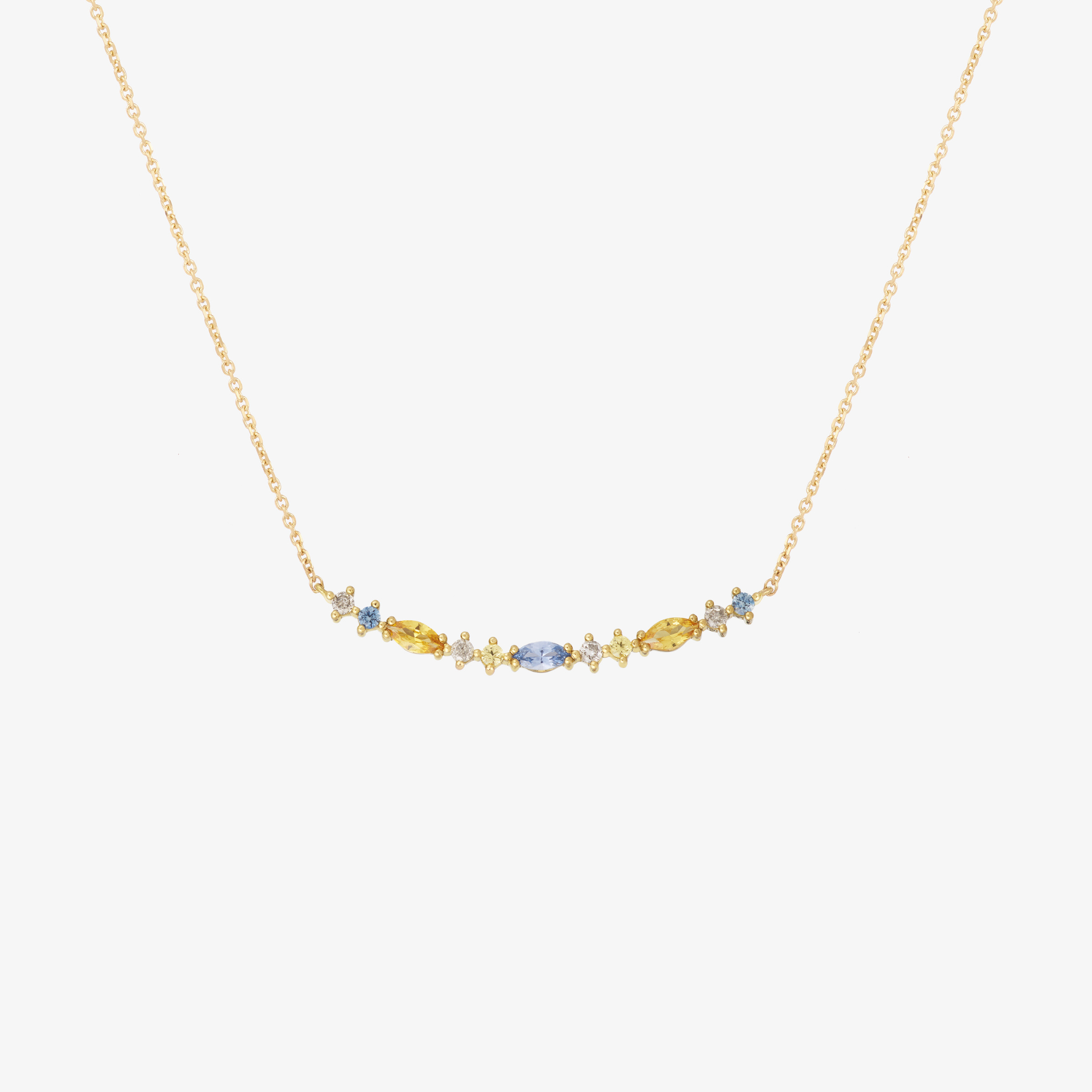 The Gaia 1 Givre necklace is a must-have. From lavender blue to soft yellow, the inspiration is decidedly pastel. A delicately curved gold pendant adorned with "salt and pepper" diamonds creates a subtle harmony. Timeless, it will captivate those seeking a unique touch. The Gaia necklace pairs perfectly with other necklaces, offering the opportunity to play with lengths and styles.