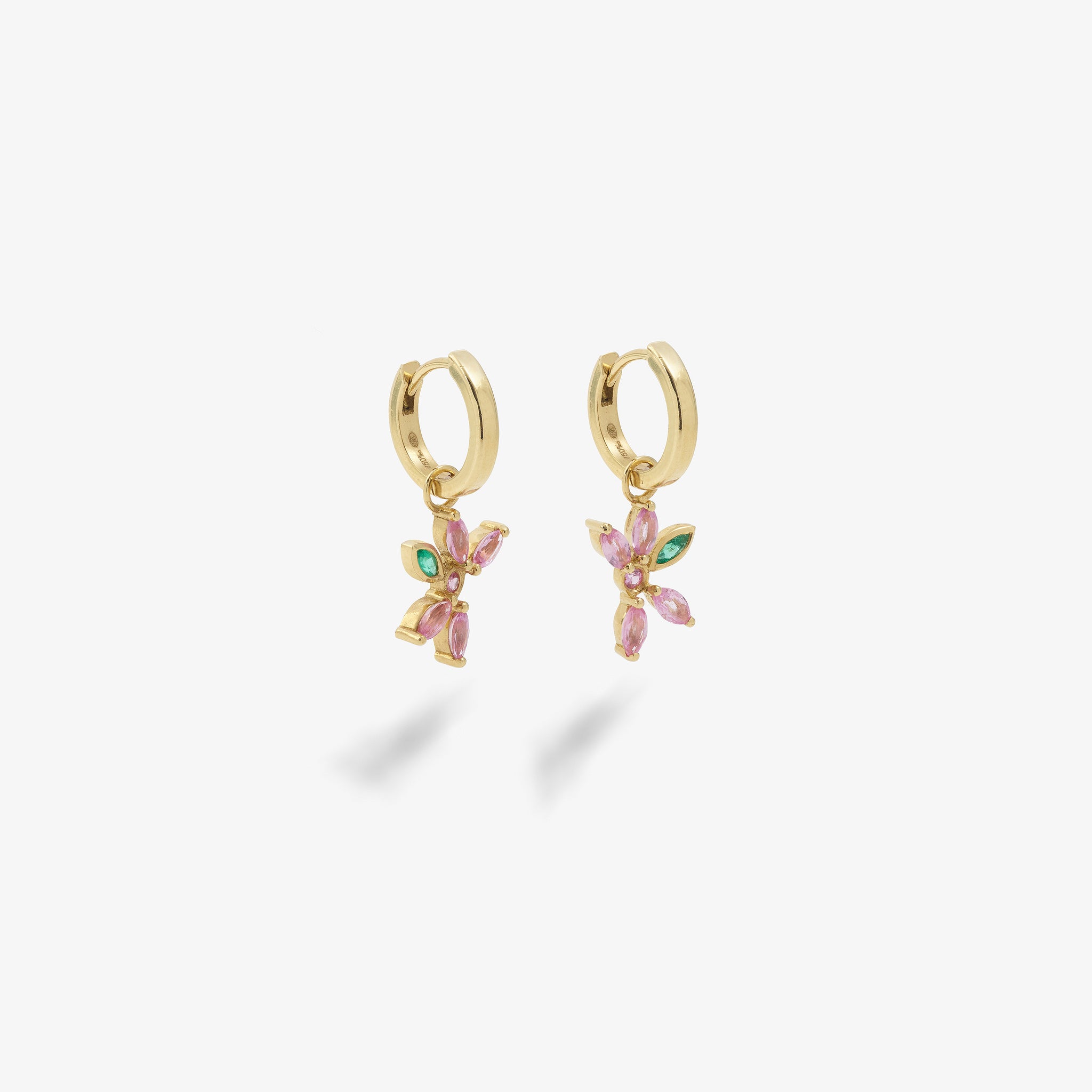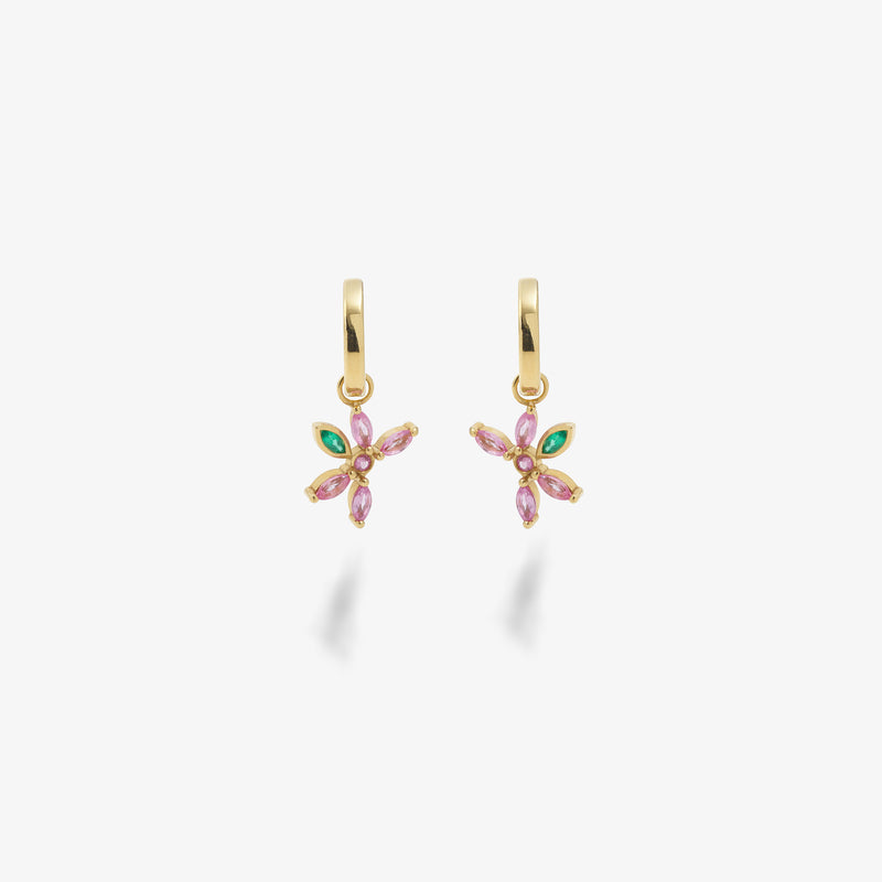 An everyday jewel that can be worn on any occasion. Delicate precious stone flowers dangle softly from the Georgia earrings 4 Pink. You will fall for the exceptional beauty of their pink sapphires and emeralds, elegantly enhanced by the Marquise cut. Worn alone or combined with other earrings, they are simply irresistible.