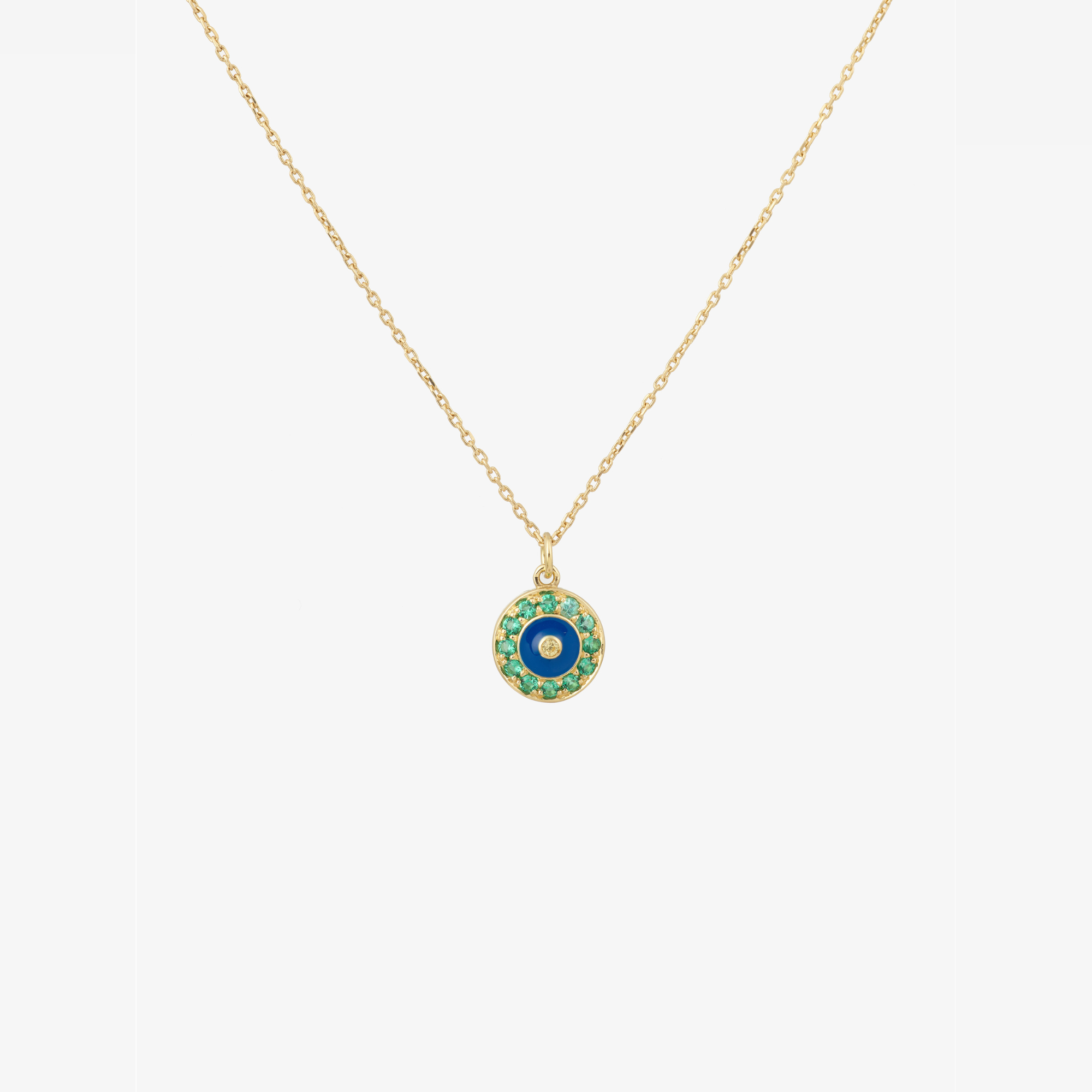 Chic and timeless, the Luna 1 Hydra necklace embodies joyful and precious jewelry. Enameled in ultramarine blue, it is adorned with a yellow sapphire and emeralds. An ideal choice to add a touch of vibrant colors to your looks.